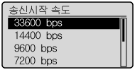 ]을 눌러 <송신시작 속도>를 선택한 후 [OK]를 누릅니다.