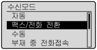 ]을 눌러 <팩스/전화 전환>을 선택한 후 [OK]를 누릅니다.