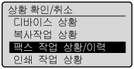 ]을 눌러 <팩스 작업 상황/이력>을 선택한 후 [OK]를 누릅니다.