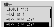 ]을 눌러 <팩스 수신 설정>을 선택한 후 [OK]를 누릅니다.