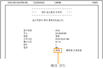 국가 번호 다음 또는 팩스 번호 앞에 포즈를 추가한 후 다시 전화를 거십시오. 원터치 키에 등록된 수신처로 문서를 전송하는 경우 세부 설정 화면에서 해외 전송에 맞게 설정을 변경하십시오.