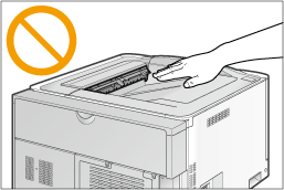 プリンターの使用中や使用直後は、排紙口が高温になります。排紙口周辺に触れないように気を付けてください。やけどの原因になることがあります。