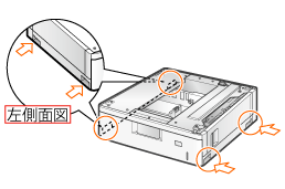<プリンターをすでに使用しているとき>ペーパーフィーダーを取り付けるときの注意については、「お読みください(プリンターの設置)」を参照してください。