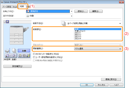 お使いのOS、プリンタードライバーの種類およびバージョンによって画面が異なることがあります。