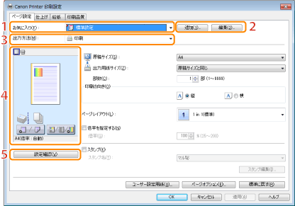 画面の表示方法については、「プリンタードライバーを表示して印刷する」または「あらかじめ印刷の設定をする」を参照してください。