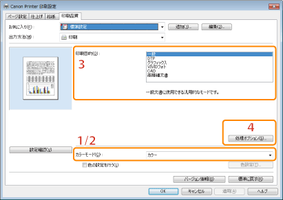 画面の表示方法については、「プリンタードライバーを表示して印刷する」または「あらかじめ印刷の設定をする」を参照してください。