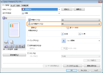 お使いのOS、プリンタードライバーの種類およびバージョンによって画面が異なることがあります。