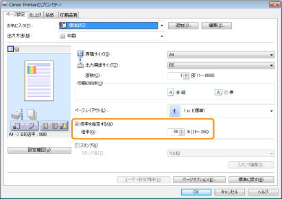 選択した用紙サイズやお使いのプリンターの機種によっては、適切な拡大/縮小印刷を設定できない場合があります。