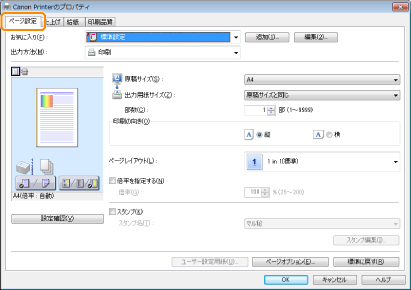 印刷設定画面の表示方法については、「プリンタードライバーを表示して印刷する」または「あらかじめ印刷の設定をする」を参照してください。