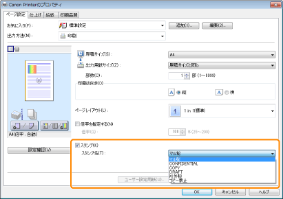 お使いのOS、プリンタードライバーの種類およびバージョンによって画面が異なることがあります。