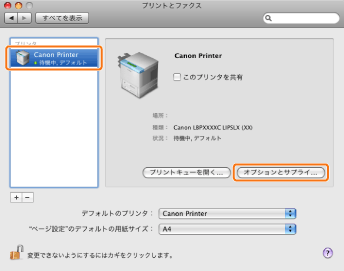 プリンターが双方向通信で接続されている場合、この手順による設定は無効となります。「プリンター情報を確認する」の手順で、オプションを自動設定してください。