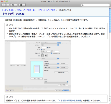 ヘルプには、すべての印刷機能について説明があります。e‑マニュアルに記載されていない機能の説明や設定方法を調べたいときは、ヘルプをご利用ください。