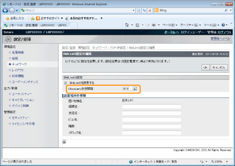 [Discovery送信間隔]で、プリントサーバーがネットワーク上で動作していることを示す情報を送信する間隔を設定します。