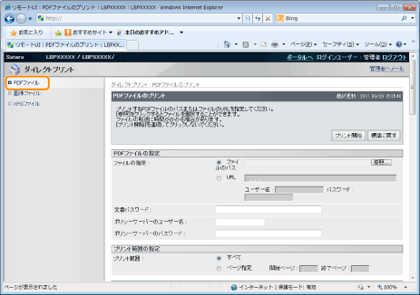パスワードを入力しないで印刷した場合、「PDFデータ復号エラーが発生しました。」が表示され印刷がキャンセルされます。印刷が許可されていないPDFファイルや、印刷が許可されていない高解像度のPDFファイルを印刷する場合は、マスターパスワードを入力します。