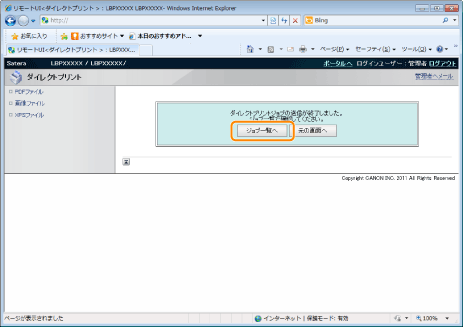 ![]() 送信した印刷ジョブを確認するときは、[ジョブ一覧へ]をクリックします。
