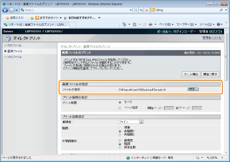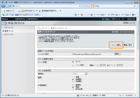 ファイルの転送中に[プリント開始]を連続してクリックしないでください。ファイルの転送には時間がかかる場合がありますが、転送中に連続してクリックすると、ファイルに不具合が生じて転送できない場合があります。