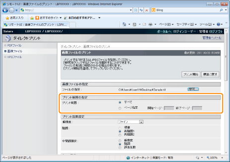印刷する範囲を指定したいときは、[ページ指定]を選択し、印刷開始するページと印刷終了するページを入力します。