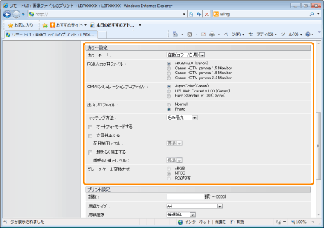 本項目の設定を有効にするには、「設定/登録」の「印字調整」で「CMS(マッチング)/ガンマ」の設定を[CMS]に設定してください。