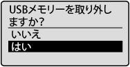 ]で「<USBメモリー取り外し>」を選択して、[OK]を押します。