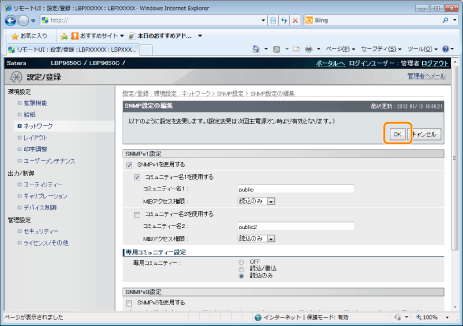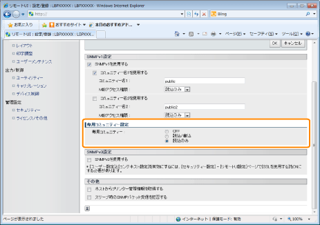 [SNMPv1を使用する]のチェックマークを消す場合は、ネットワーク管理者に相談してから設定してください。