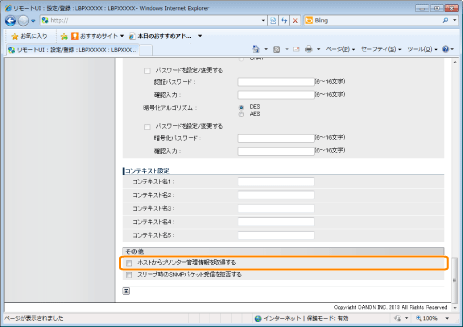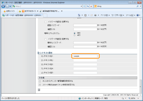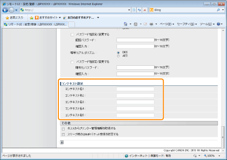 SNMPv3プロトコルで使用するコンテキスト情報を設定するときは、[コンテキスト設定]でコンテキスト情報の設定を行います。