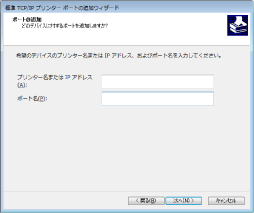 プリンターのIPアドレスを設定する方法によって、ポートを追加するときに表示される次の画面で[プリンター名またはIPアドレス]に入力する値が異なります。