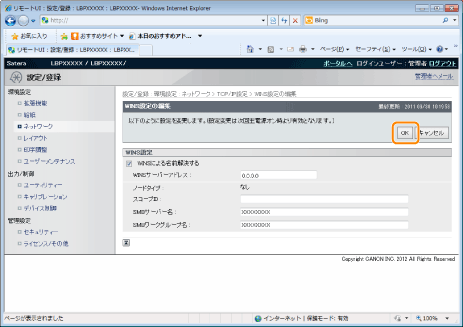 プリンターをWINSサーバーに登録する場合は、次の項目も設定してください。
