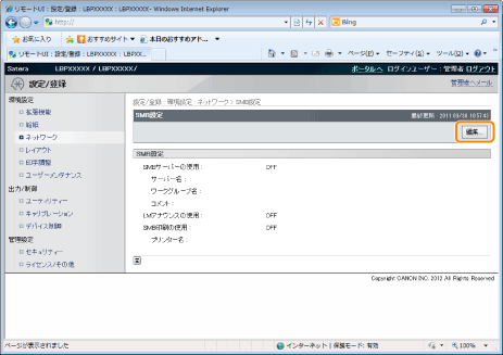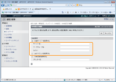 SMB機能SDカードが装着されている場合にのみ有効になります。