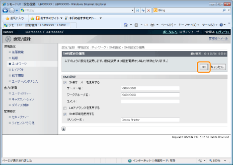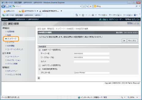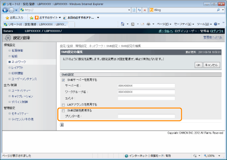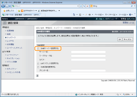[SMBサーバーを使用する]のチェックマークを消すとプリンターがSMBネットワークに表示されなくなります。