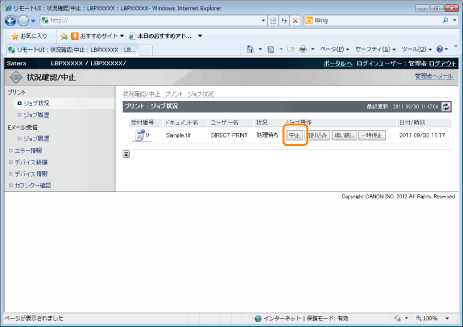 印刷中のジョブの削除は、リモートUI以外の方法で行うこともできます。