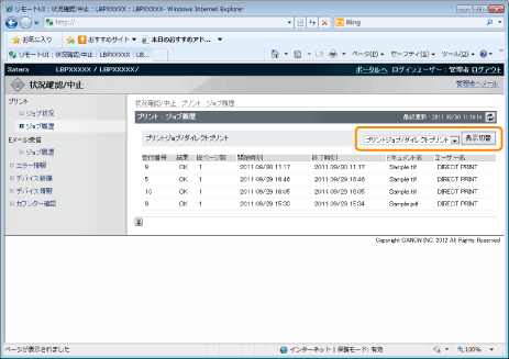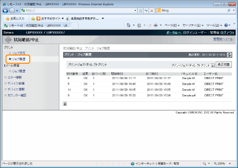 印刷ジョブを管理する前に、「お読みください(ジョブ管理)」をご覧ください。