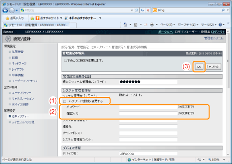 [パスワードを設定/変更する]にチェックマークを付けます。