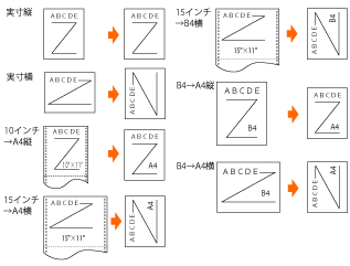 15 インチ × 11 インチの連続用紙用に作成したデータをB4に縮小して印刷します