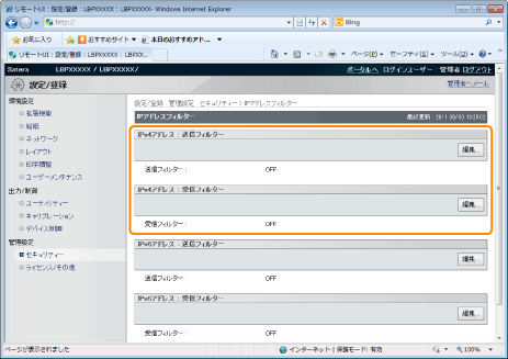 [IPv4アドレス : 送信フィルター]
