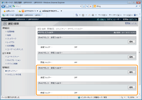 [IPv4アドレス : 受信フィルター]