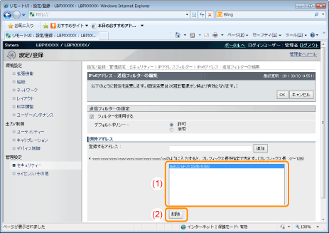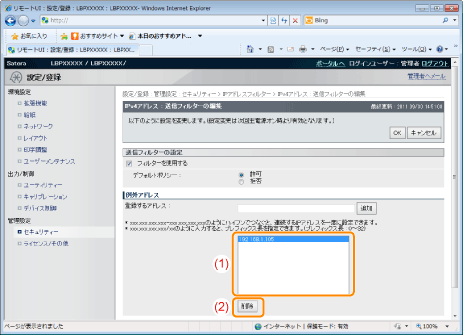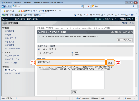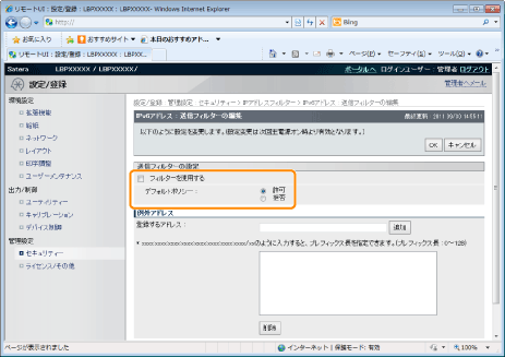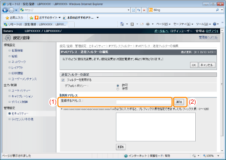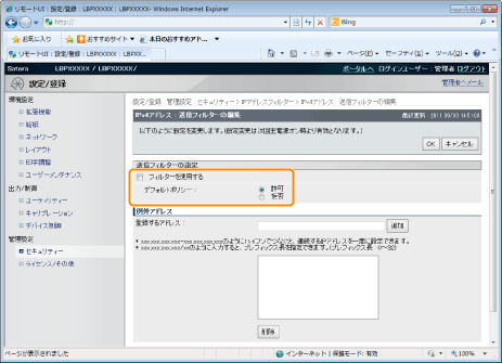 印刷を拒否または許可するIPアドレスを入力します。