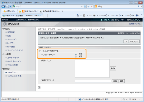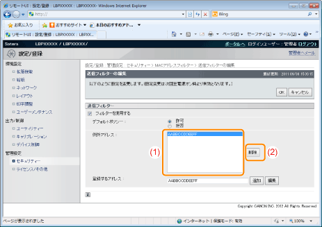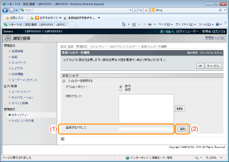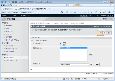 アクセスを許可するデバイスのMACアドレスを入力します。