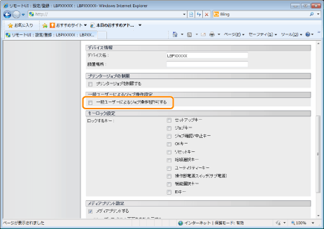 チェックマークを消すと、一般ユーザーモードでは、すべてのジョブ操作ができなくなります。