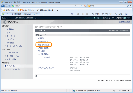 [管理設定]メニューから[セキュリティー]を選択します。