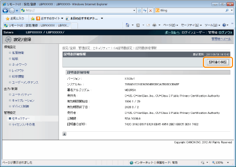 証明書を検証するときは、[証明書の検証]をクリックします。