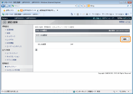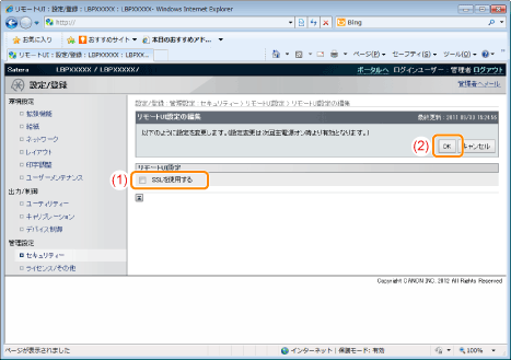 [SSLを使用する]が設定できないときSSLで使用する鍵を選択していない場合は、[SSLを使用する]にチェックマークを付けることができません。