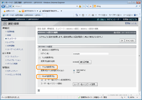 ユーザー名やパスワードを設定するにはSSL暗号化通信機能を設定しておく必要があります。