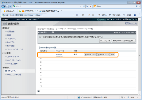 削除したいセキュリティーポリシーの[削除]をクリックします。