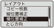 ]、[  ]で「横位置補正」を選択し、[OK]を押します。
