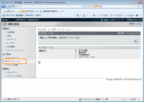 ]で「キャリブレーション」を選択して、[OK]を押します。