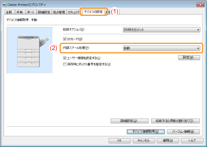 設定を変更するには、次の手順で[内部スプール処理]を[自動]に変更してください。