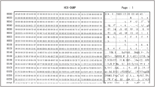 ダウンロードするデータが多い場合は、先頭から 20 バイトと最後から 20 バイトのみを印字し、その間のデータを印字しません。