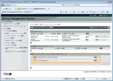 ファイルを指定するときアプリケーションファイルとライセンスファイルの両方を指定してください。