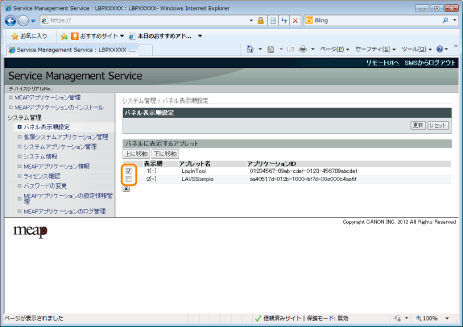 [上に移動]または[下に移動]をクリックして、上下にアプレットを移動します。