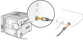 ![]() About the LAN cableThis printer does not come with a LAN cable or a hub. Have cables or a hub ready as needed.